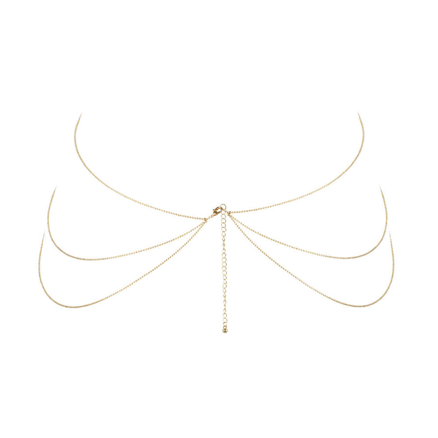 Body chains in 8 shape to wear with your favourite looks, lingerie or bare skin alone. Accessories inspired by the New York cabaret dancers of the 1920s non-conformist, sensual and striking women. Features 100% adjustable! The collections chains can be adapted to your body with their adjustable clasp. The perfect gift! Accessories that adorn the body in a fun way, presented in designer packaging. A scandalous pairing! Combine them with FLASH pasties and long live strapless! Enhances the female form. Small chains that embrace your body, highlighting your most sensual areas. Dual use. Elegant jewels to flaunt on any occasion and suggestive props to intensify intimate moments. Fashion Erotic Accessories A blend between current fashion trends and traditional eroticism. Play without problems! The chains are nickel-free so wont cause allergic reactions. Summer Festival Look! Trends start out on alternative runways. Set the trend with Magnifique! Exclusive design by Bijoux Indiscrets. How to use it TIPS Perfect with plunging necklines, dresses or tight tops. Place the accessory over your clothes, lingerie or on bare skin. Or try all three options on the same day and ndash remember that Magnifique can be worn as both fashion and erotic accessories. Place the closed chain over your head and rest it on your neck. Adjust the remaining part of the accessory to your waist using the adjustable clasp.