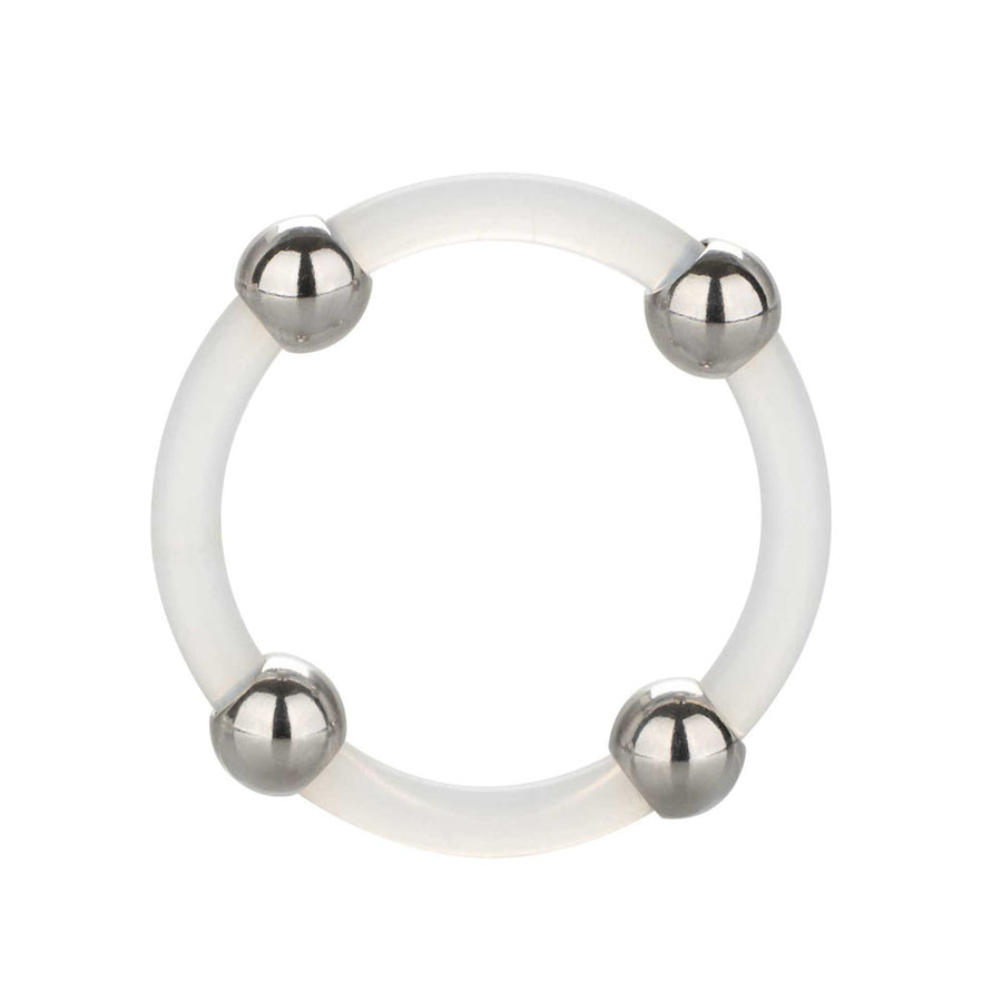 Made to enhance, escalate and intensify ecstasy every time you slip on the Large Steel Beaded Silicone Ring. The sturdy, yet stretchy silicone ring supports while the steel pleasure beads thrill you and your lover. The ultra stretchy and comfortable ring is sure to enhance pleasure by increasing stamina, sensitivity, and girth. Look forward to an explosive pleasure experience with every teasing stroke of the steel pleasure beads. This strong, supportive ring indulges your man with increased stamina, girth, and sensitivity, while you can savor his increase stamina and girth, the thrilling stimulation beads tease you towards an orgasmic wonderland. The passionate pleasure ring is made of silicone and stainless steel pleasure beads. The large ring has a diameter of 1.5 Inches